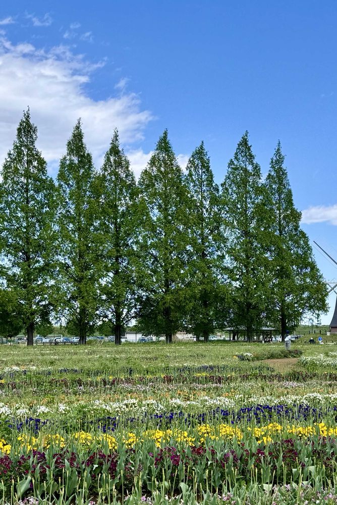 実はメタセコイアの写真は何故かカットされて、右には風車、左はメタセコイアが続いていました😅