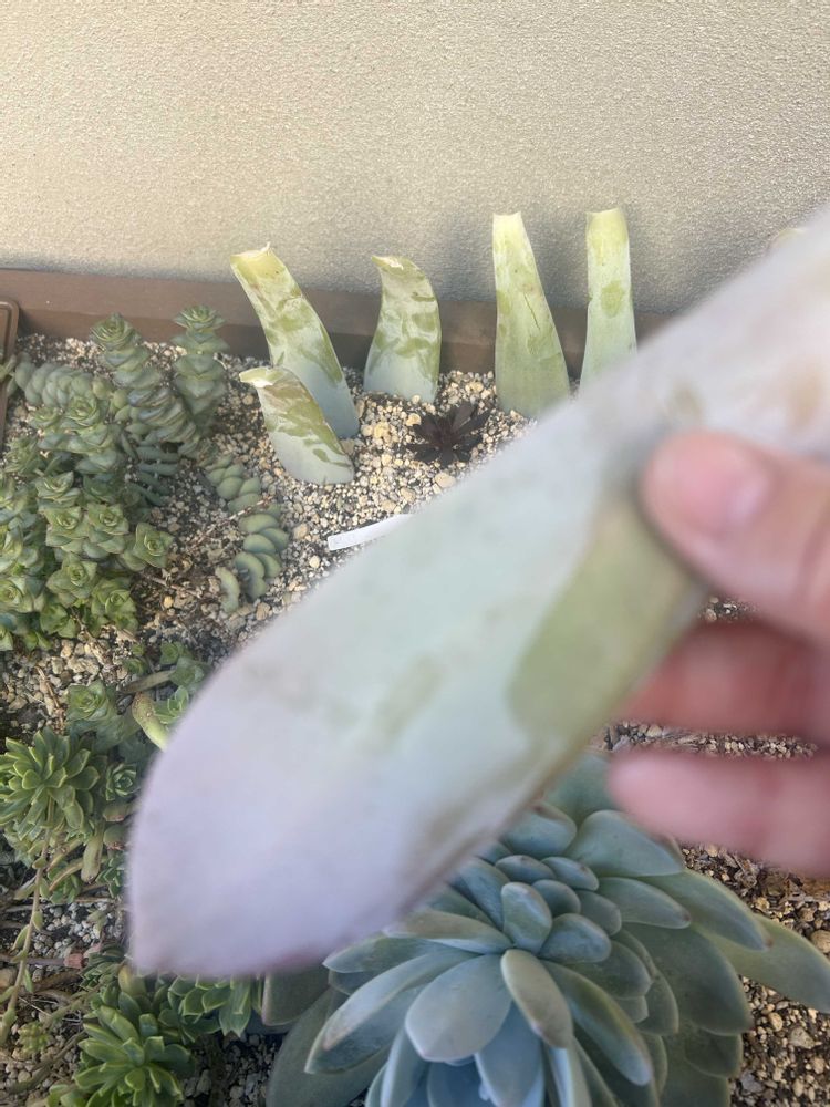 この巨大な葉っぱは葉挿し出来るのか…取り敢えずその辺に置いといてみる実験。