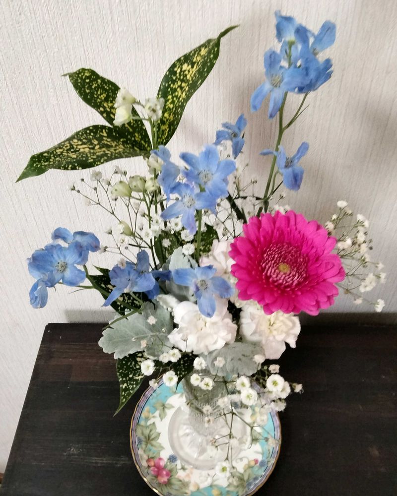 スーパーでもらった青い花で遊ぶ💙🌿🤍💞