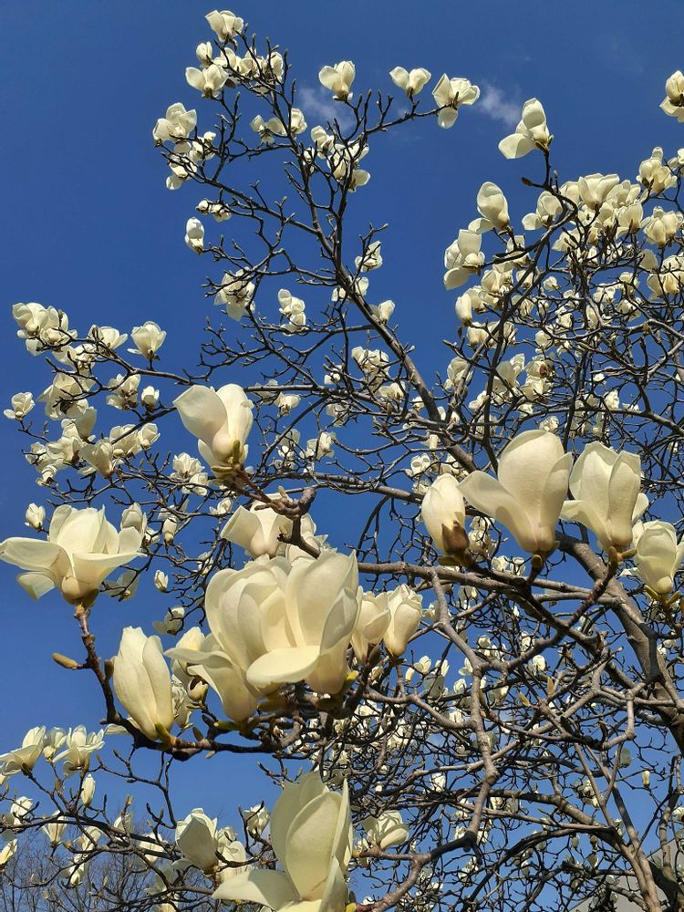 澄みきった青い空にモクレンが映えますね😃🌸☘️💕🎵