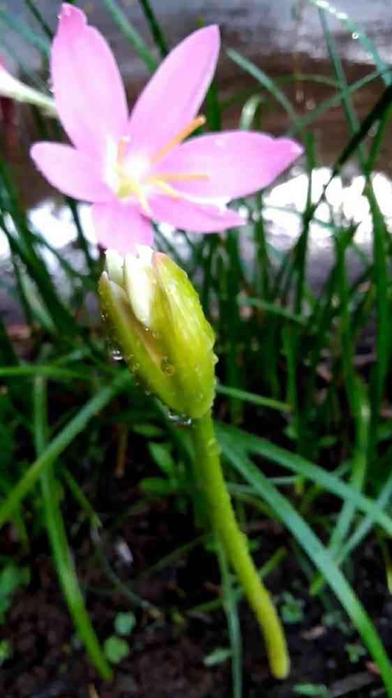 ピンク色のお花は、ゼフィランサスのサフランモドキですよ😉