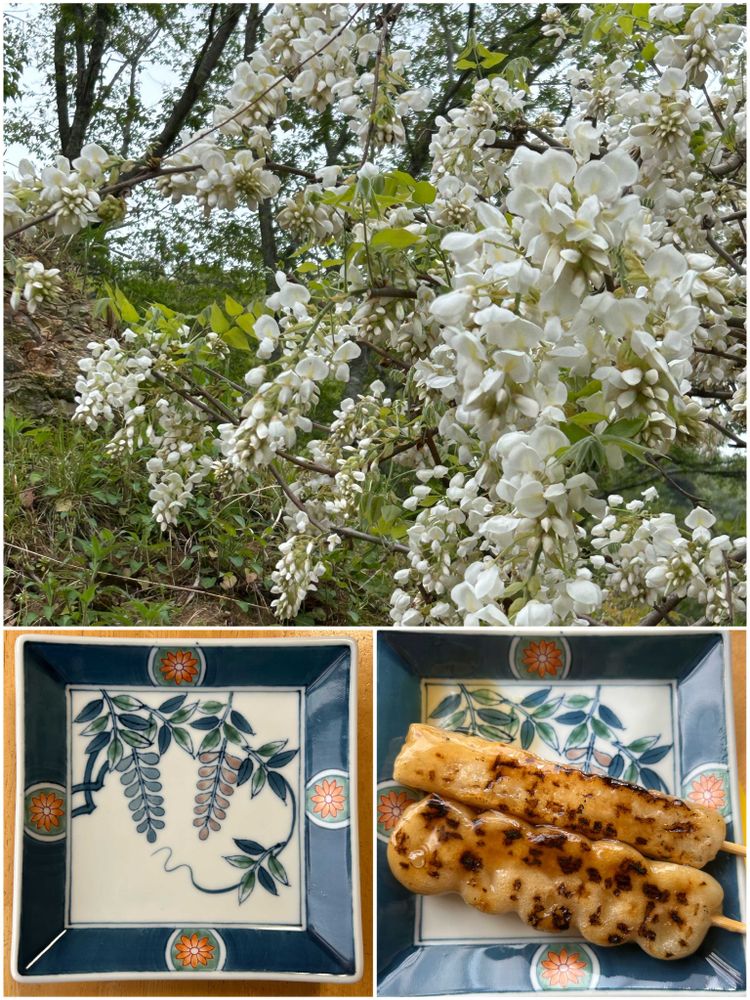 藤の絵付のお皿□、みたらし🍡…、よばれたいわ😋