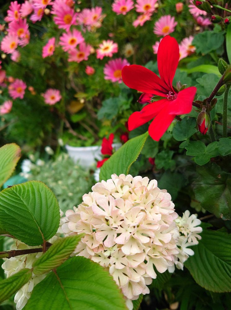 my Garden🌼ピンクオオデマリが可愛いです😄🩷花友さんに挿し木で頂いて、2年目にして咲いてくれました👏✨️すると👀💦モネマネ上手なガビチョウ🐦⬛さんがmy Garden🌼でひと休み💨鶯のモネマネしてました😄(笑)