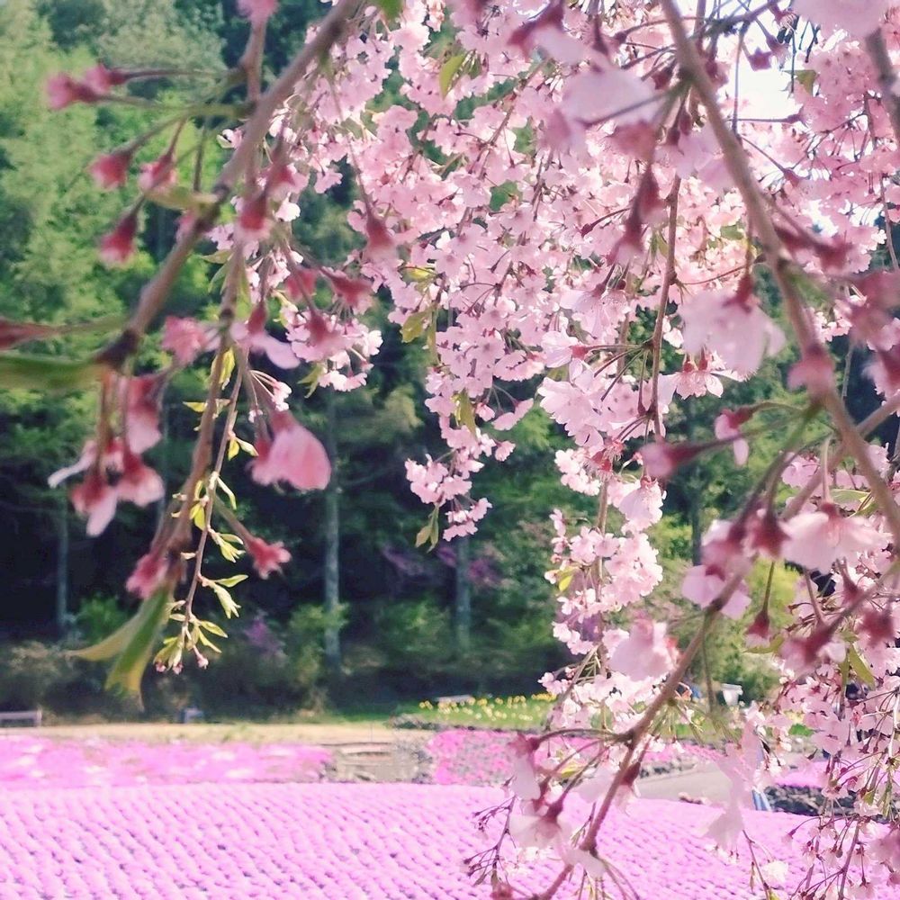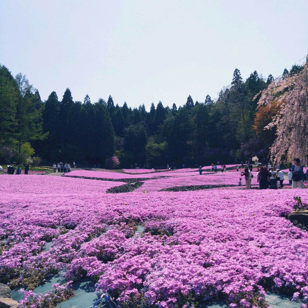 芝桜を見に行って来ました♪入り口から見渡せる程の広さだけど見応えあり!小高い所にベンチがいくつかあり、座って見渡せます(´∀`*v)