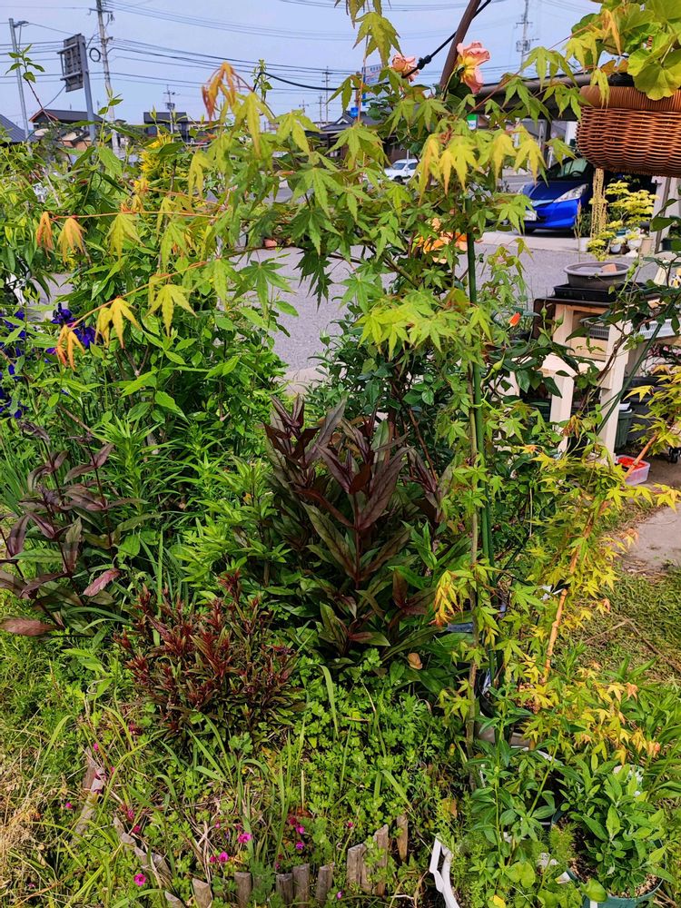 おかんが貰ってきて植えたもみじ、やっぱここじゃないなー感があるので、大きく掘り起こして移動。濃い紫の葉のペンステモン ハスカーレッドの近くに植え直しました。この前ゲットしたオレンジ色の美峰モミジの鉢植えとかも近くに置いて馴染ませときました。