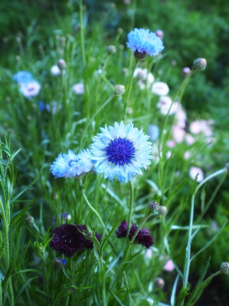 ②朝はヤグルマギクの透明感が増してきれい。
