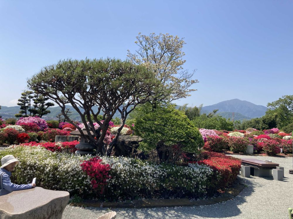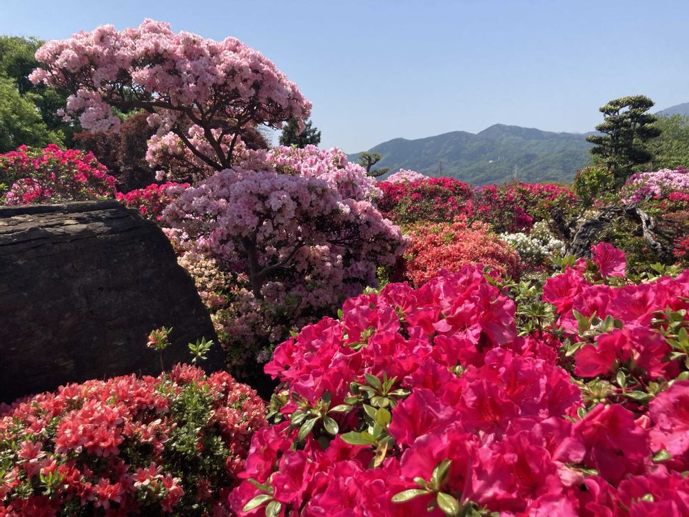見晴らしの良い高台に、赤やピンクの鮮やかなツツジ。