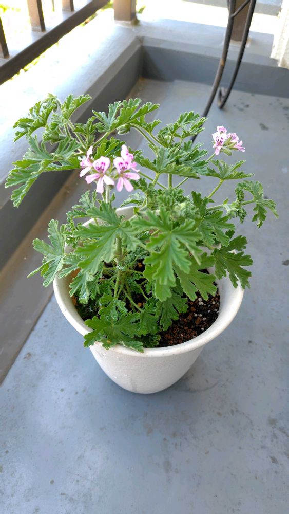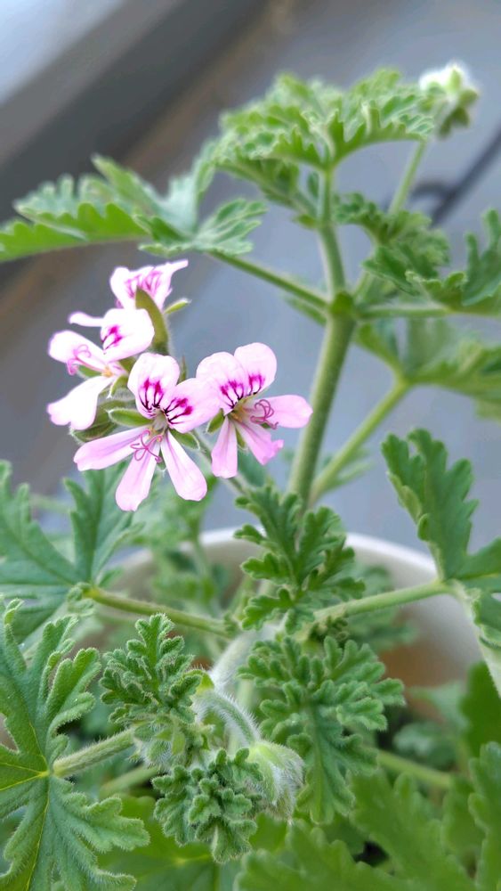 ①②レモン🍋ローズゼラニウム 今年も咲き始めた〜 今年は新たに小さくしました 葉っぱを触るとレモンの香りが、ほんとに爽やか