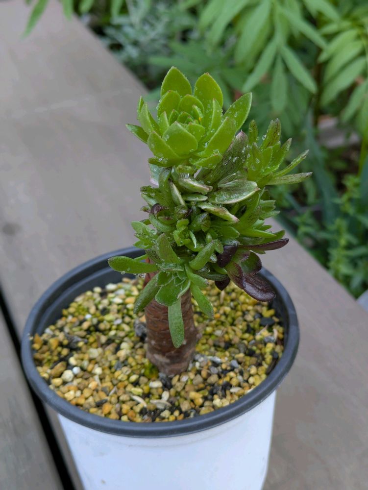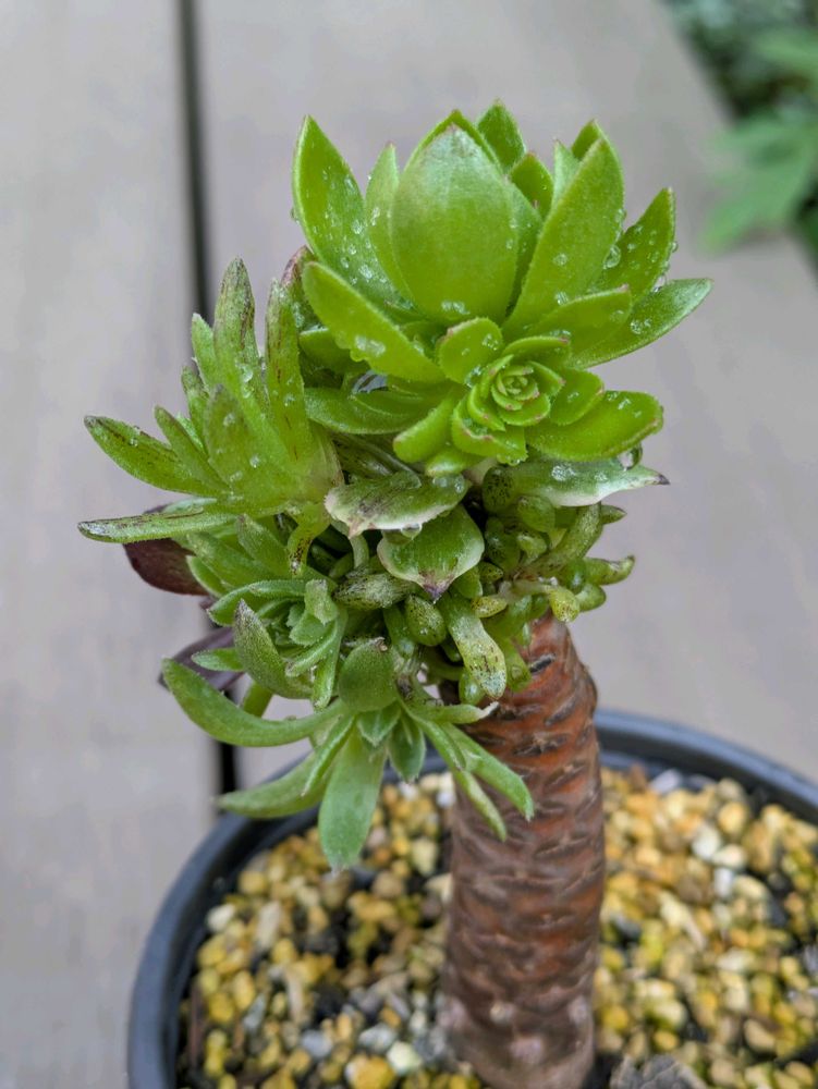 去年棒だけになったアエオニウムをダメ元で置いといたら、驚異的な復活をしたが…君は何者だい?!笑