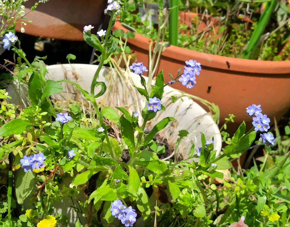 去年はこぼれ種で、鉢植えや庭で咲いていたのに、今年は何処を探してもワスレナグサより小さくてひよわな感じのキュウリグサしか見当たりません😭