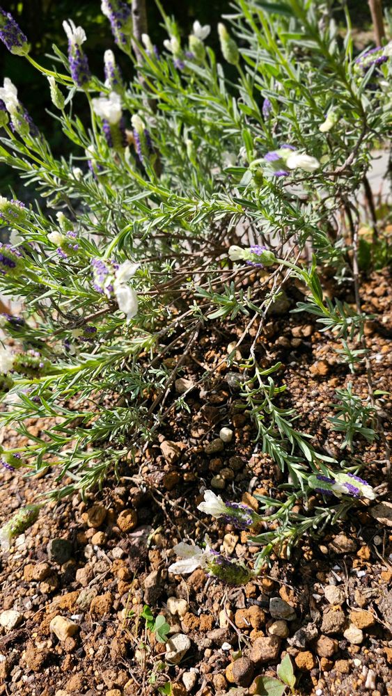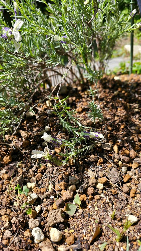 フレンチ系のラベンダーは匍匐しないらしいけれど、地面に下ろしたほうが楽そうに思えたので、土を足して枝の向くままに広げてみた。
