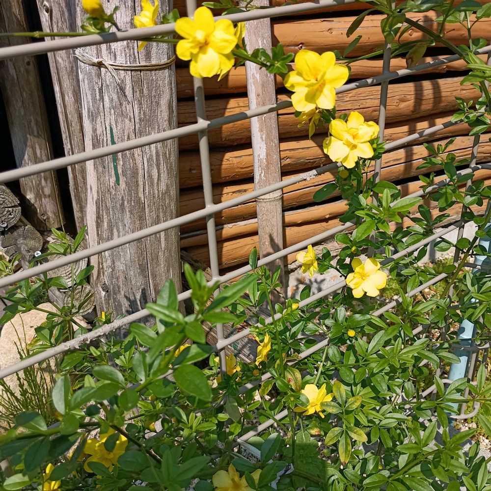モッコウバラ 昨年急に亡くなった友達から挿し木に貰ったのが付いて今年花が咲いてくれました🙏🙆🥰
