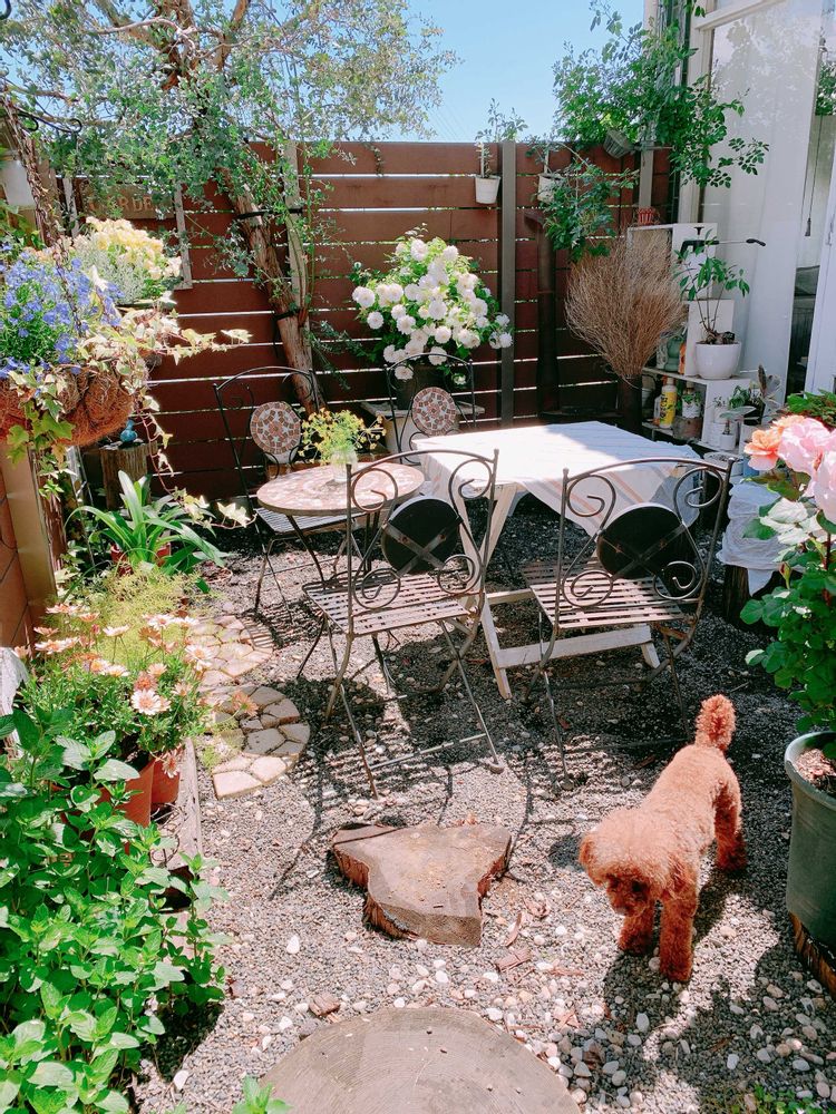狭いテラスですが、お気に入りのスペースです☺️
