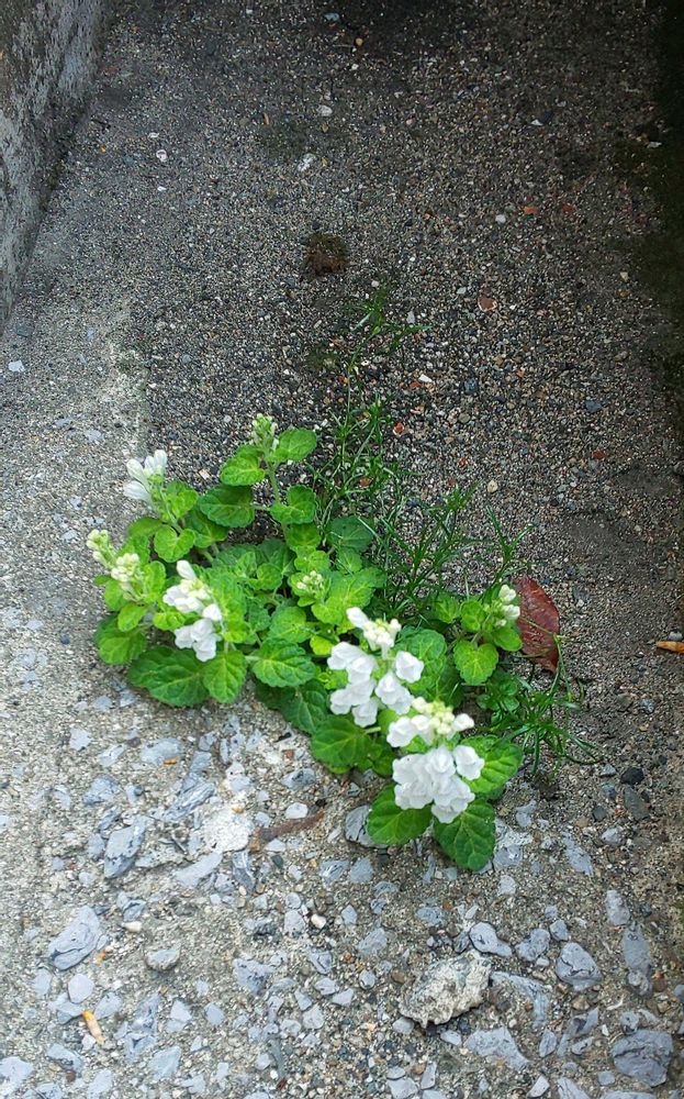 買い物帰りいつものように側溝の中をふと見たら私の好きな白花のコバノタツナミソウが咲いている!😲