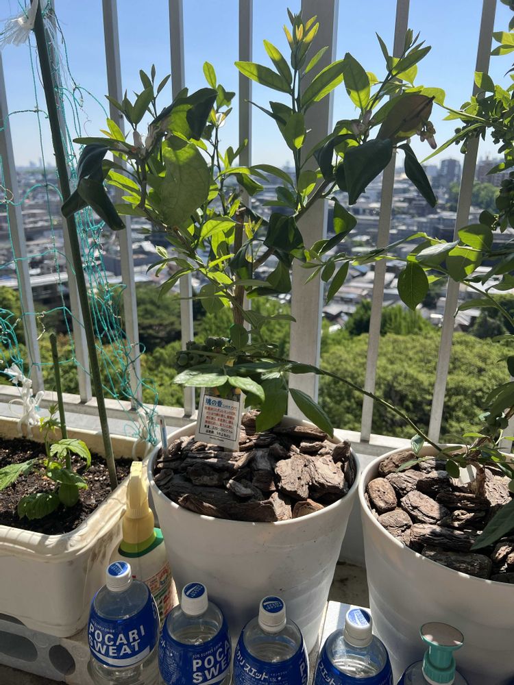 レモンとデコポンの春芽、はじめはポロポロと落ち心配しましたが、今はだいぶ落ち着きました。