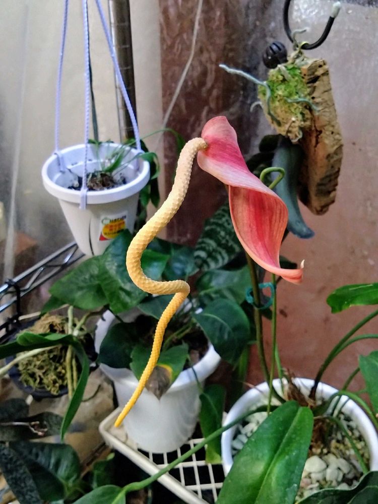 ①アンスリウム パピヨンの仏炎苞はツイストしてます。