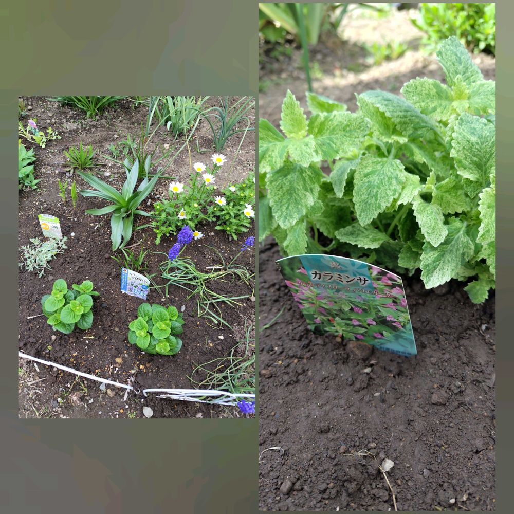 5枚め…ホワイト🤍ガーデンに斑入りのカラミンサとアゲラタムをお迎えしました⤴️⤴️