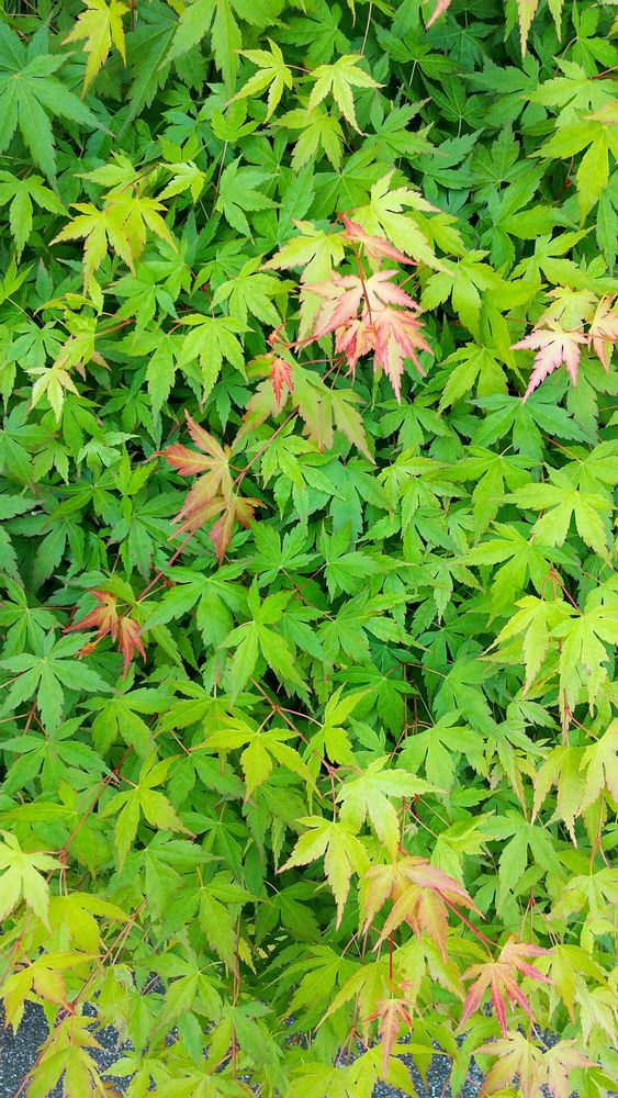 今日は涼しげな色合いの緑の葉のもみじを見かけて撮影しました。