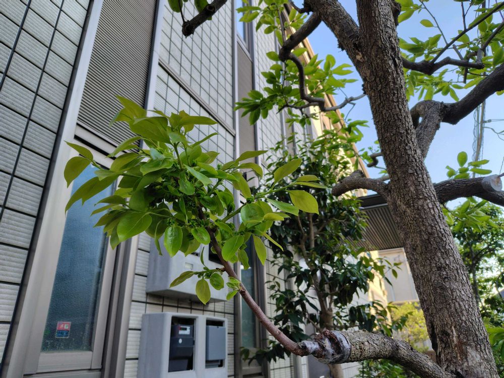 メインのミカンの木の枝に高接ぎしたレモンとデコポンも芽が出そうな雰囲気…💭