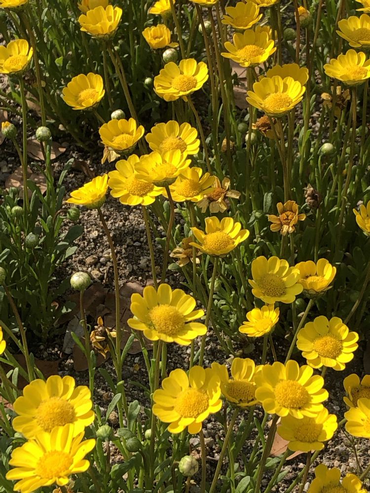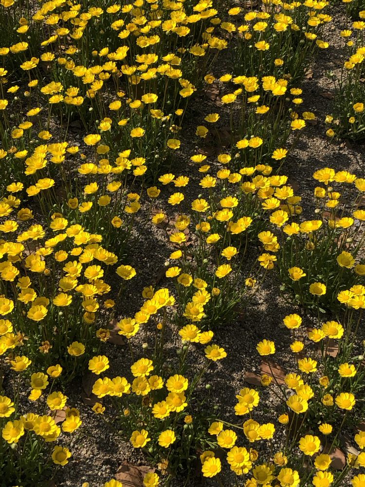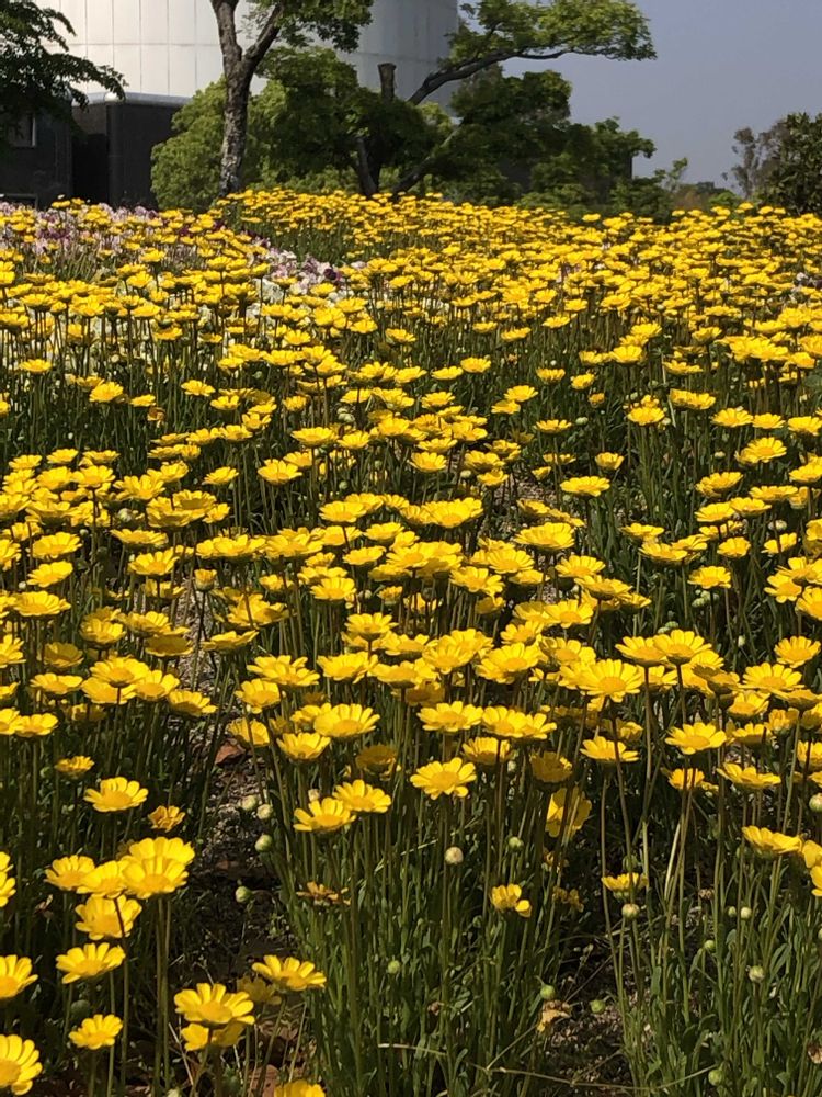 黄色いお花「ムルチコーレ」が花壇いっぱいに咲いています。📸🌼🌿😊😄🌞✌️