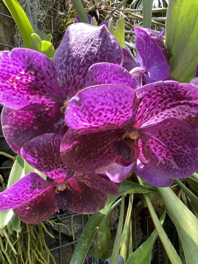府立植物園の温室の蘭、どれも美しいですね!中でもバンダの模様はきれいです👍