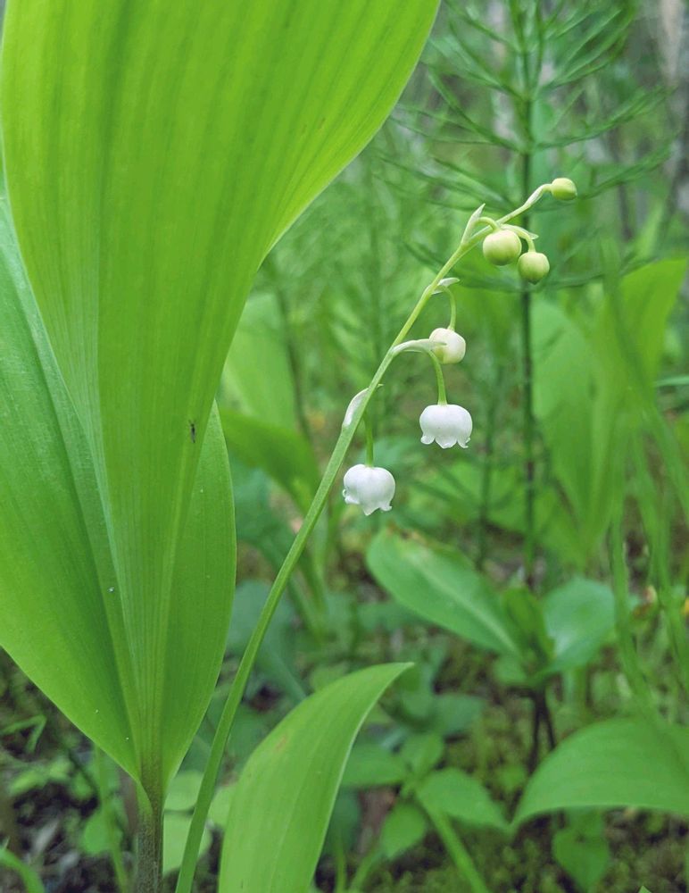 ⑤一度だけ出会えた日本スズランは花茎が葉より短くドイツスズランは葉と同じ位だそう💡
