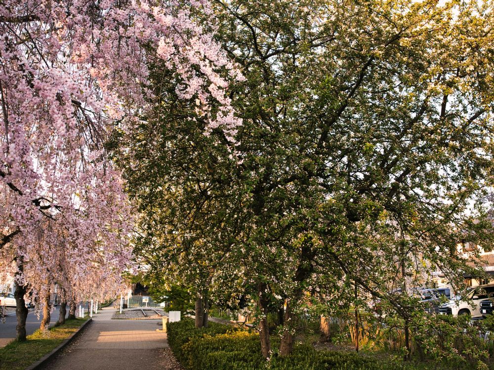 しだれ桜並木の中にあり 桜のあとに咲くようで 観光客がいなくなった今 ひっそり咲いてました。 ウォーキングしなければ 気がつきませんでした😁