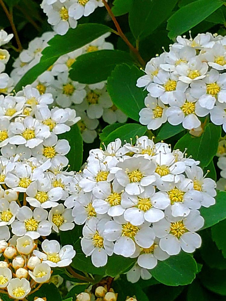 1枚目コデマリ、2枚目ナニワイバラ、3枚目ヒメウツギ、4枚目『今日のお花』スズラン、5枚目ジューンベリーです😁