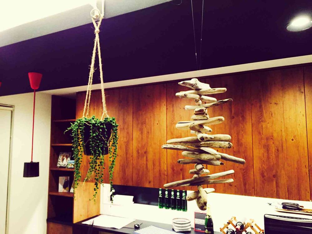 海に行って流木拾い。穴を開けてつなぎ合わせただけでオシャレに。海カフェスタイル♪