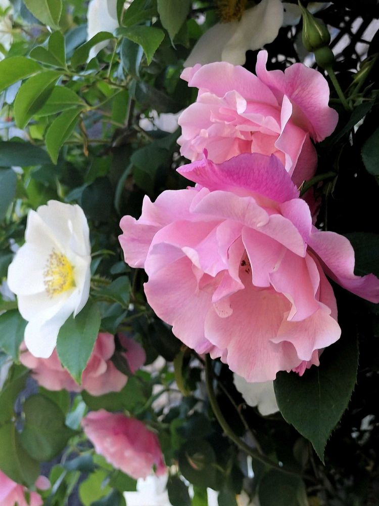 ピンクのフリルも、白の清楚なバラも、どちらも美しいですね。香りもある🌹なのですね。