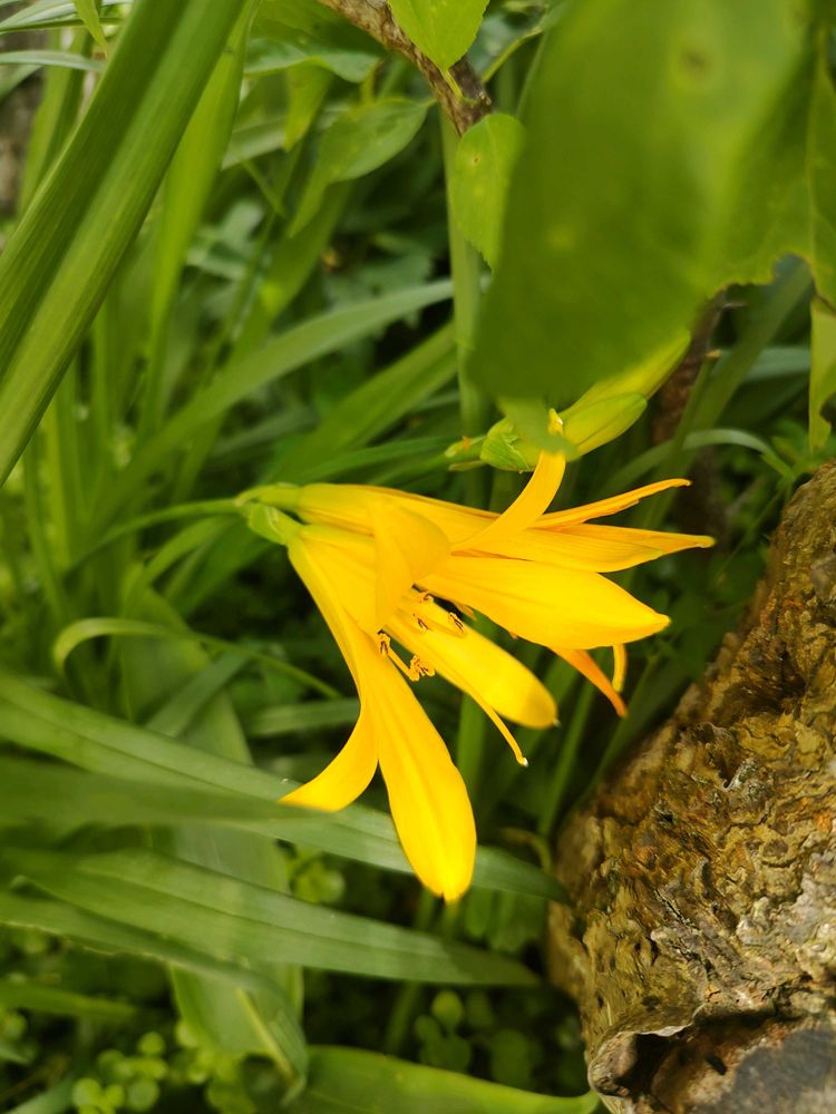 1枚目 梅の木の下で、ひっそりと開花していたニッコウキスゲ💛