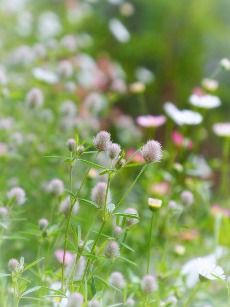 エリゲロンはトリフォニウムの花穂のスモーキーピンクに憧れ、トリフォニウムはエリゲロンのまぶしい白に憧れてる、そんな想像をしています😊💕