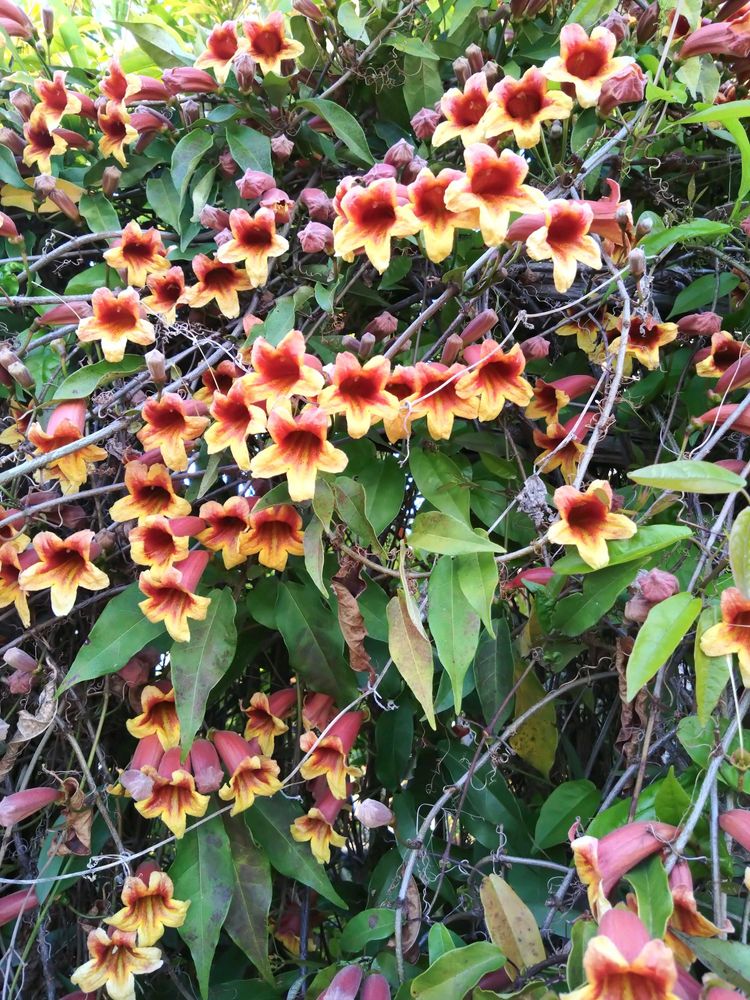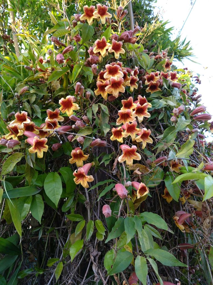 ③〜⑤はツリガネカズラ(ビグノニア・カブレオラータ)。花言葉「濃厚な愛」「私を見て」その他には「栄光」「名声」「名誉」「華のある人生」などがあります。