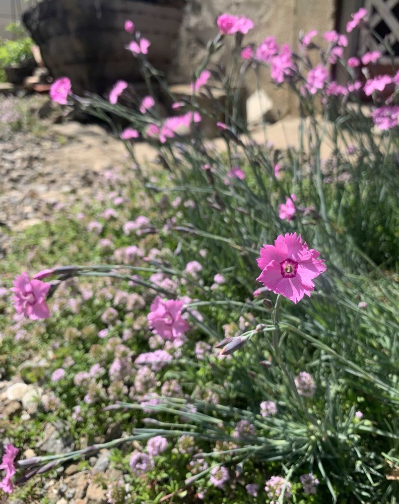 クリーピングタイムと一緒に植えてたタツタナデシコがたくさん咲きました〜可愛いです💕