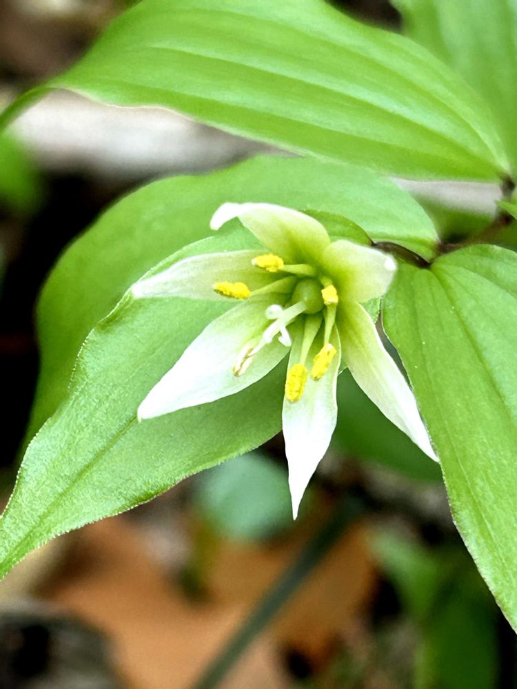 やや湿った腐植質の積もった場所に生育し、上部で弓形に曲がる茎の先端に、直径1cmはどの白い花を1〜3輪つける