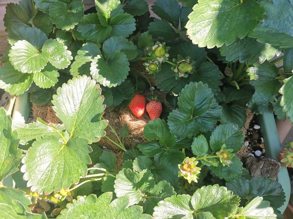 極狭ガーデンですが苺も実り、クレマチスも次々と咲いています🤭