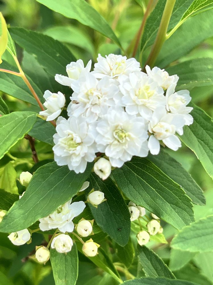 八重咲き小手毬ちゃん、古いお花を落とした後に、残ってた蕾が咲いてます🥰