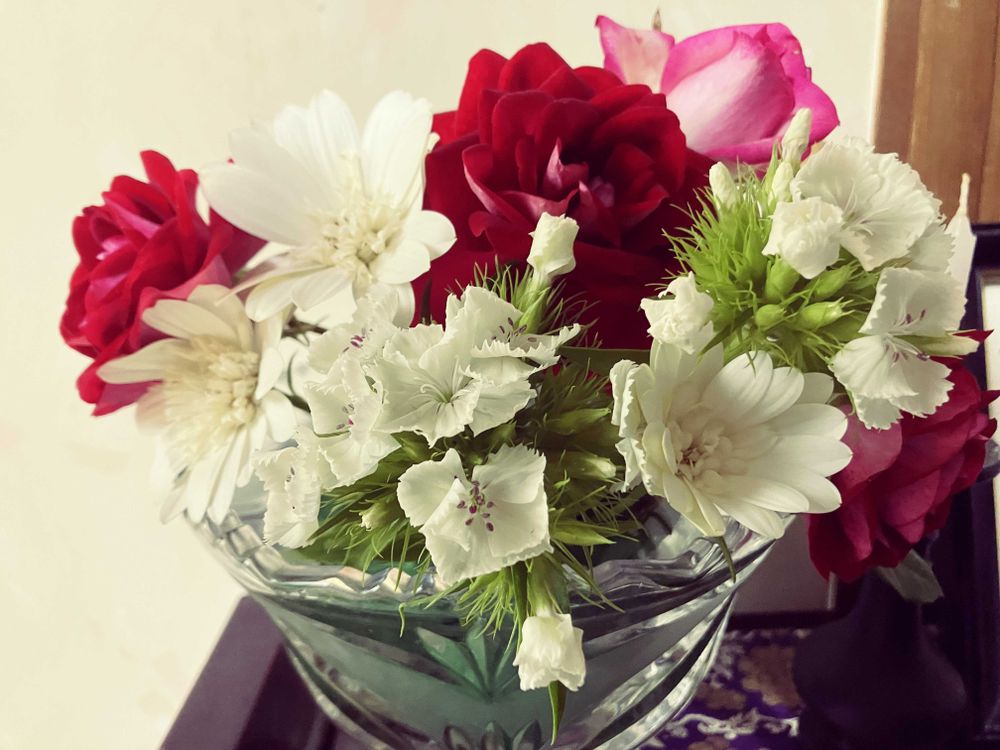 今月は 母の命日と母の日があるので 我が家の花で 明るくしてみました だんだんと 母の歳に近くなります