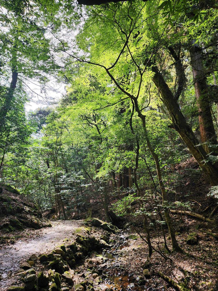 休日に早起きして、🚃旅の後、里山から鎮守の森へと続く道を歩きました