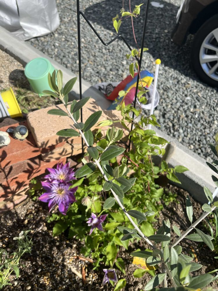 冬までまるで元気がないように見えてこのまま枯れてしまうのかと心配してたクレマチスがズンドコ伸びてきたのでちょいと支柱を。