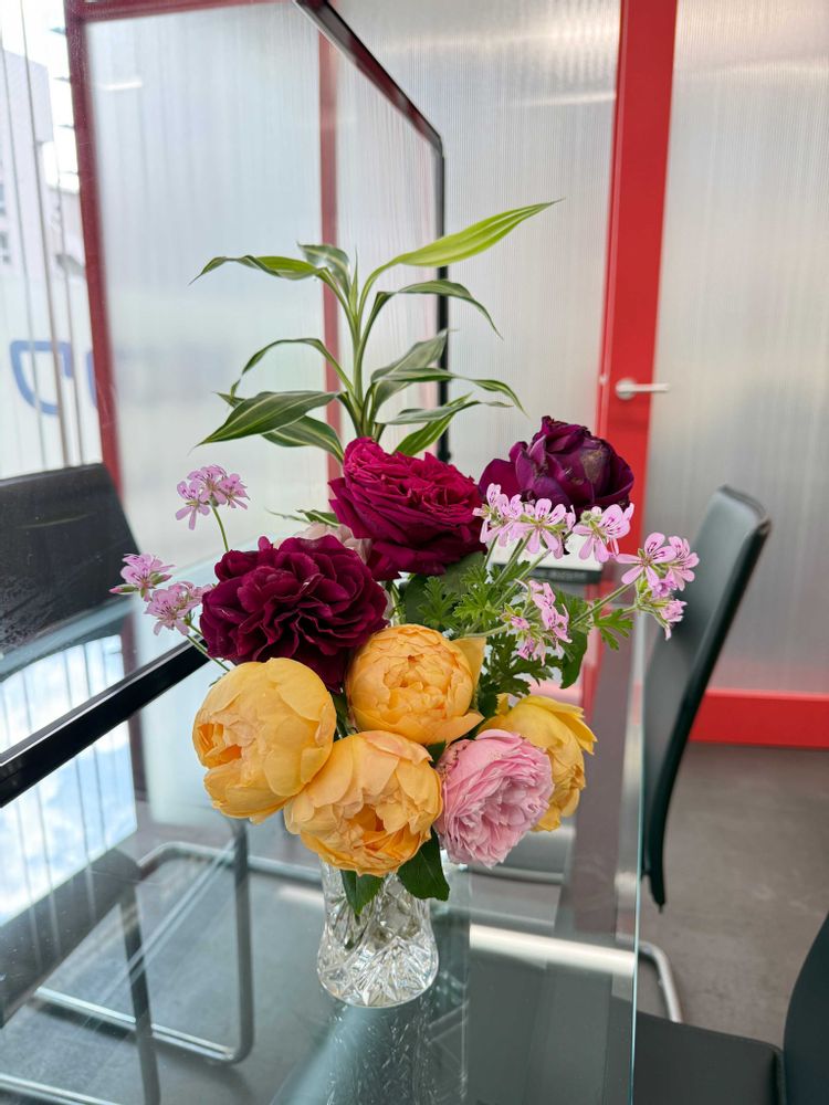 事務所のカウンターが華やかになり、お花代が浮いてます😊