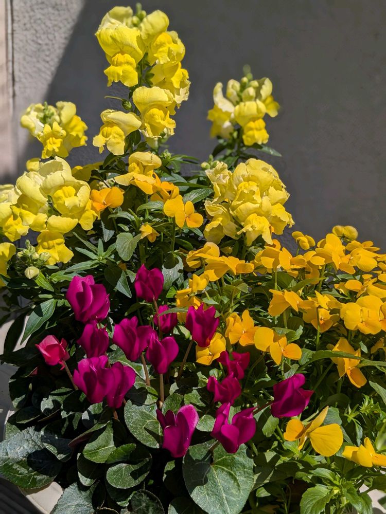 ⑤お花の寄せ植え❣️キンギョソウ💛ビオラ💛ガーデンシクラメン💗🩷