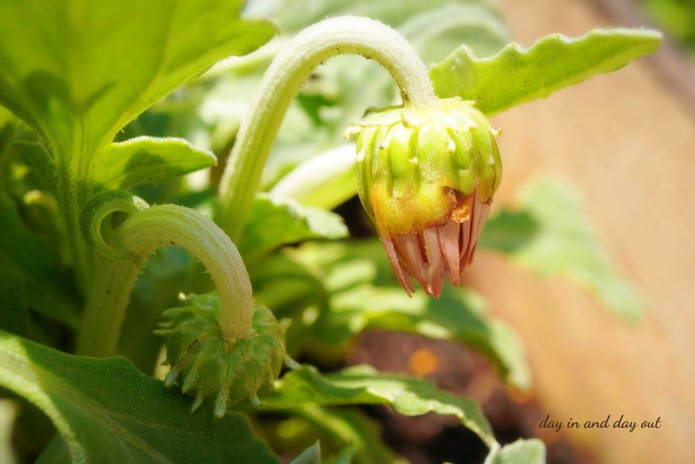 宿根ガザニアの萼が指輪の立て爪みたいで可愛いෆ ̖́-