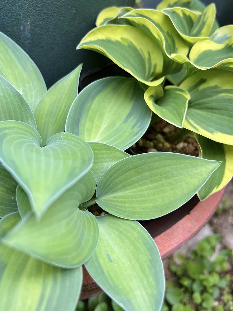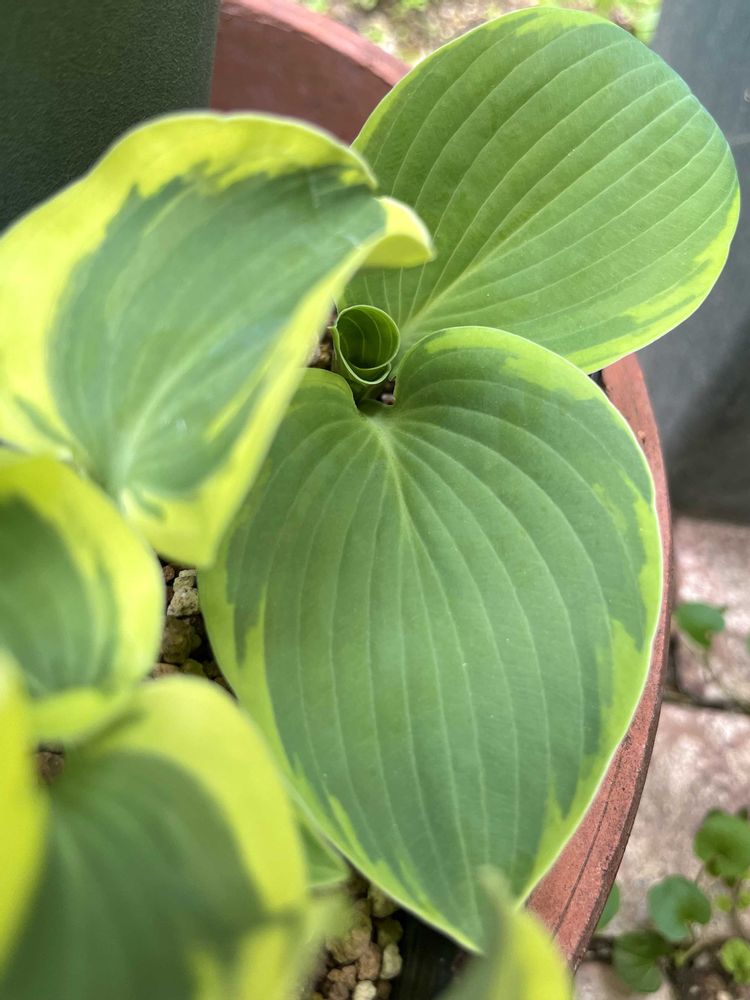 去年、お迎えしたホスタたちが無事芽吹きました🌱✨手前はパラダイスジョイス、真ん中は名称不明、奥はフランシスウィリアムズです💚