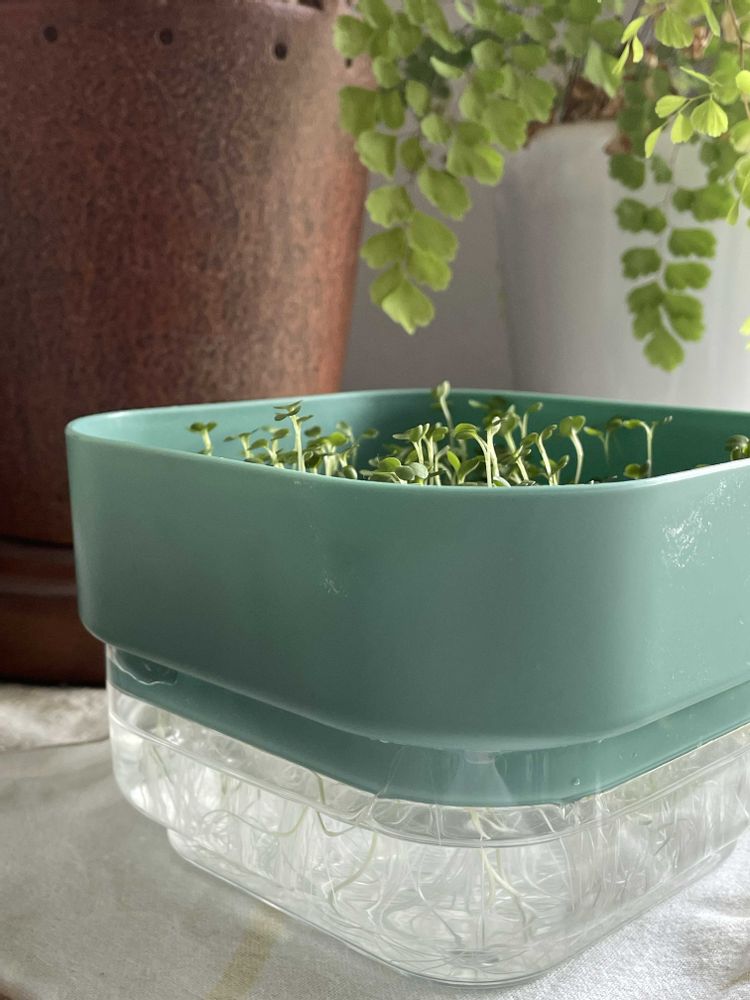 たしかDAISOで購入したカイワレ栽培容器に古いルッコラの種を蒔いてみました🌱かわいい!