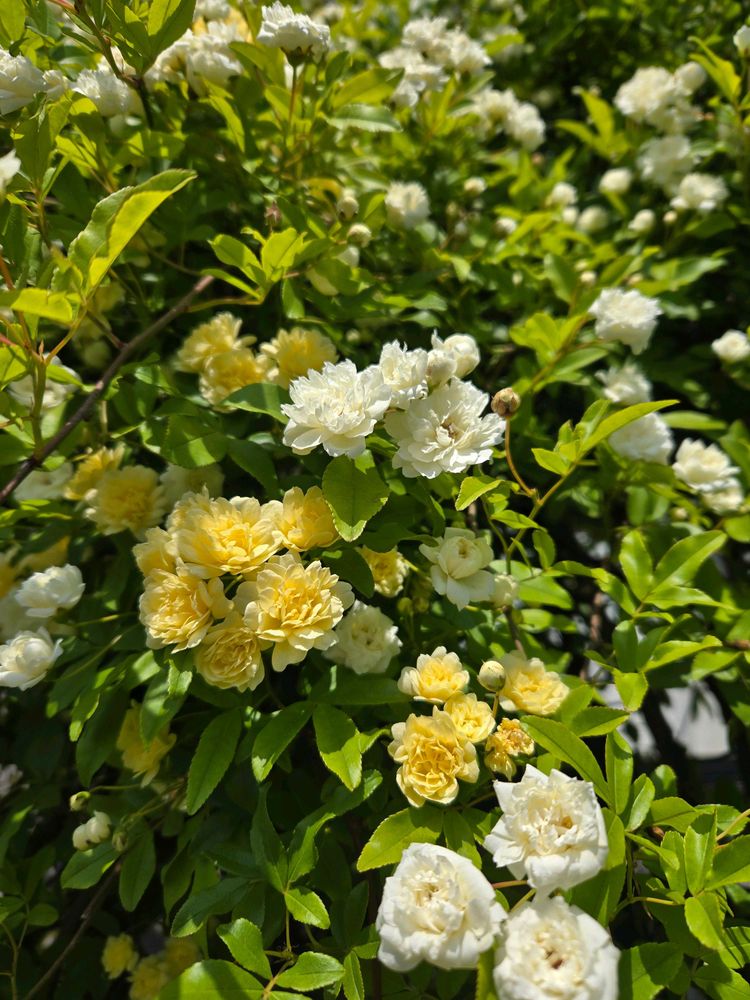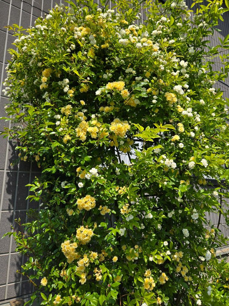 少しずつモリモリになってきたアーチモッコウバラさん…💛🤍もう少し花数が増えるといいな🤗