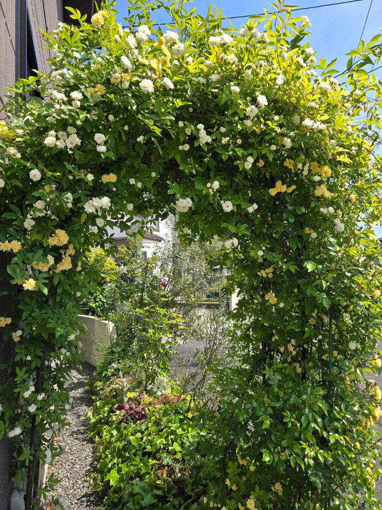 我が家のアーチモッコウバラ💛🤍💛🤍