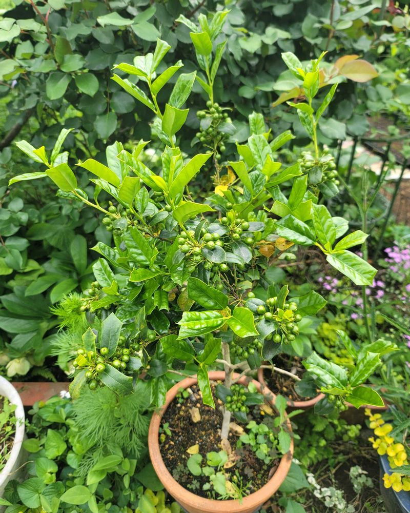 ⑤🟢クリスマスホリー🟢はしっかりとグリーンの実が付き新芽も伸びてきました🌿💚
