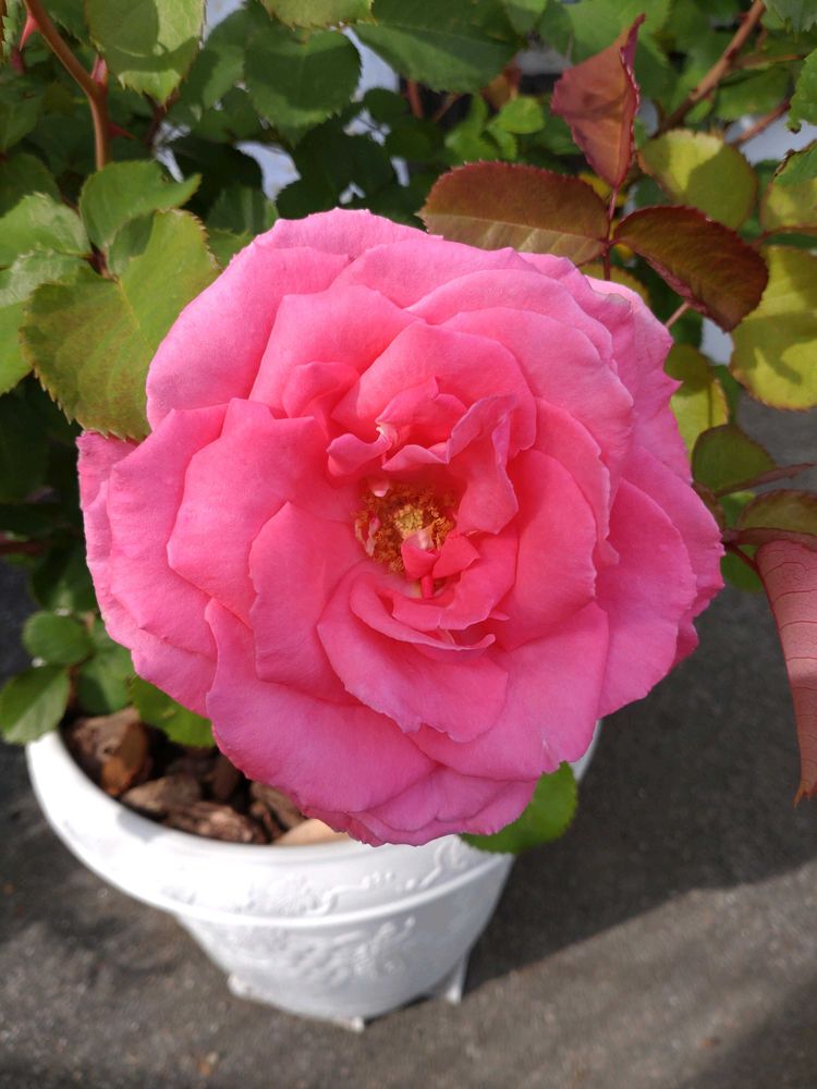 濃いサーモンピンクの大輪の素晴らしい花です!今風邪をひいていて鼻が悪いので、残念ながら香りは分かりませんが実物の芳純を間近で見れてハッピーです☺️