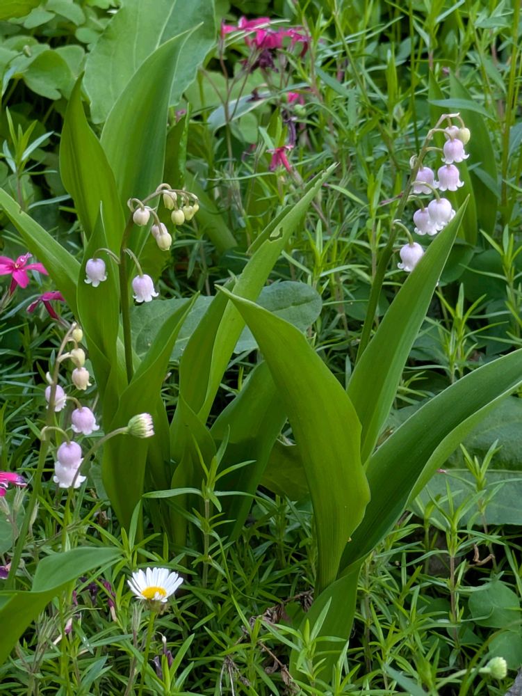 スズランの日と言う事で 毎年庭の雑草の中に逞しく咲いてくれるピンクスズランを見てください😊